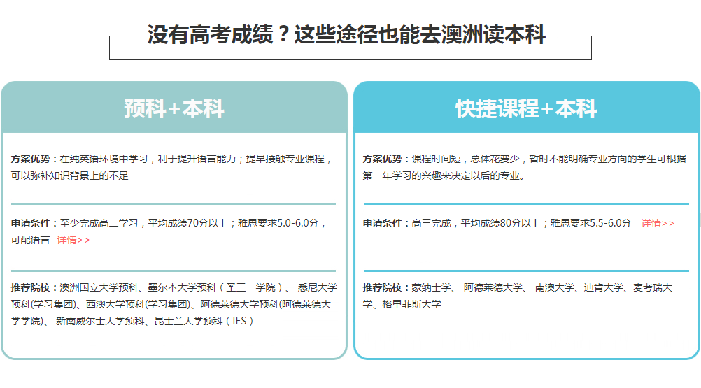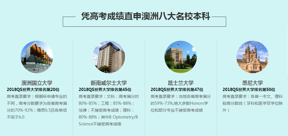 导语:高考成绩不理想?没能录取心仪院校?不怕不怕,凭高考成绩直申澳洲名校本科,给你更好选择!