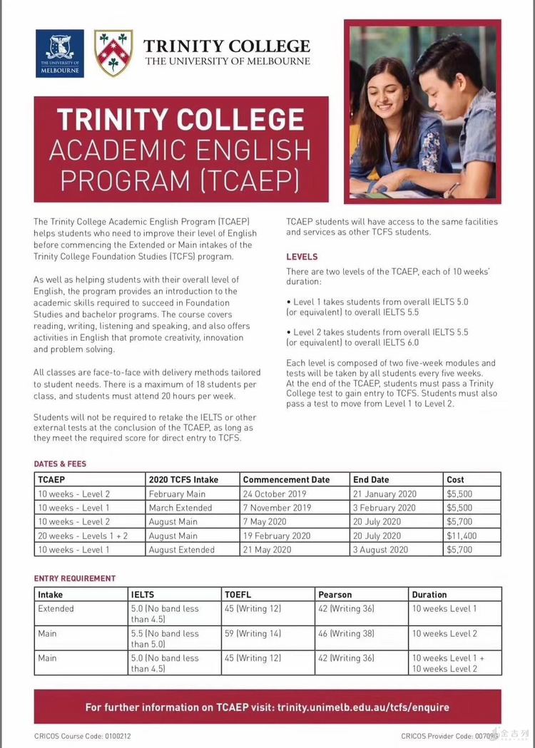 墨尔本大学预科学院Trinity有自己的语言中心了,将提供10或20周的语言课程,衔接2020年开始的Main 和 Extene预科: