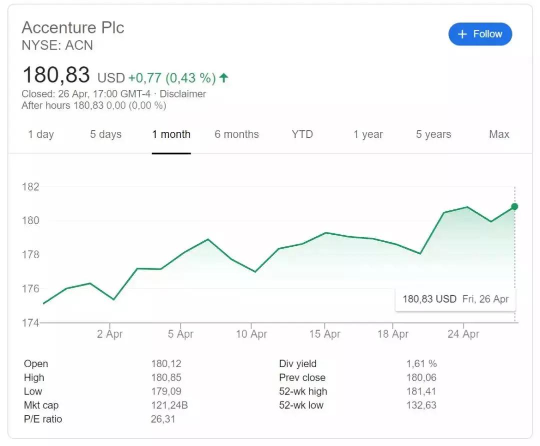 然而距离被诉案件已过去一周 这件官司竟然并没有影响到埃森哲的股票价格甚至月线还有小幅上涨!