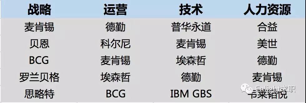 不同公司的专长领域之间也会有重叠之处,例如做人力资源的咨询过程中,会涉及到管理咨询的问题;做战略咨询,可能会涉及到运营和人力资源的领域。