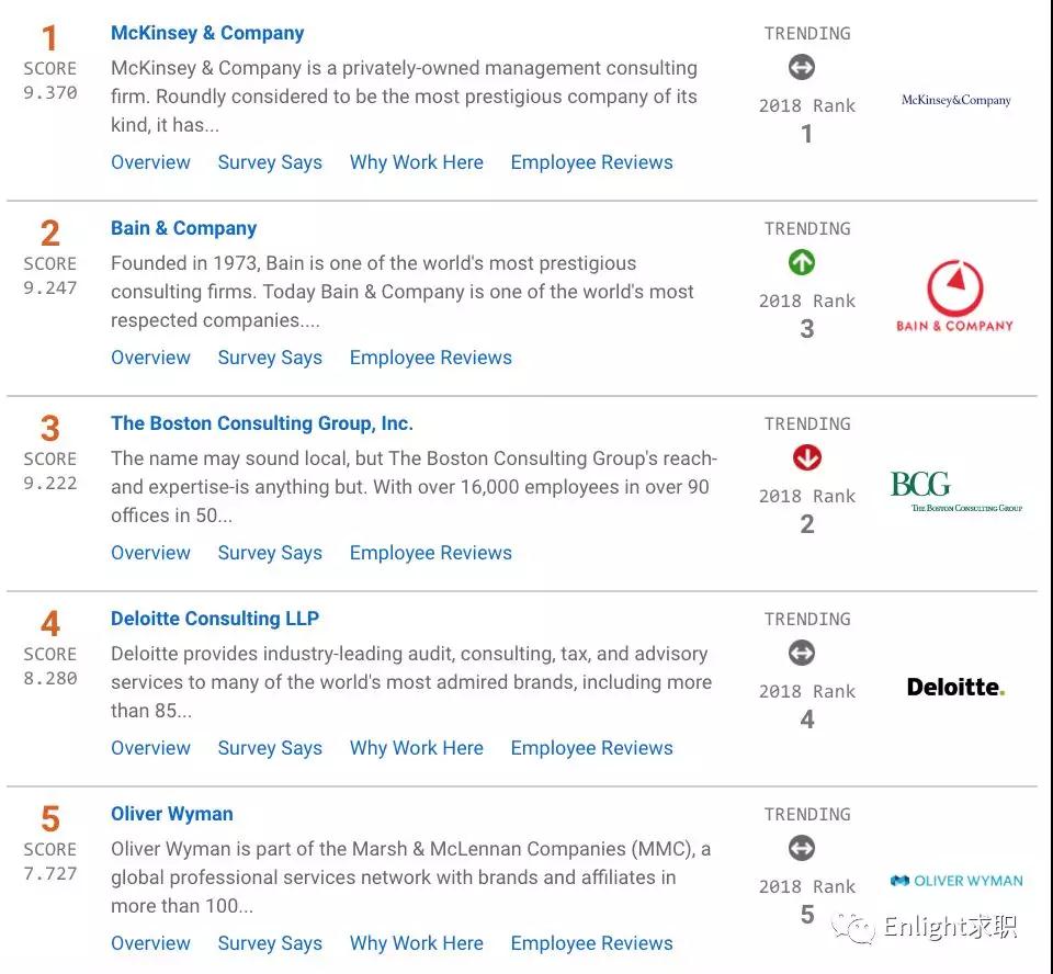 从榜单中可以看出,MBB依然占据着榜单的前三名,其中,咨询行业巨头麦肯锡又不负众望,继续稳拿第一的宝座。