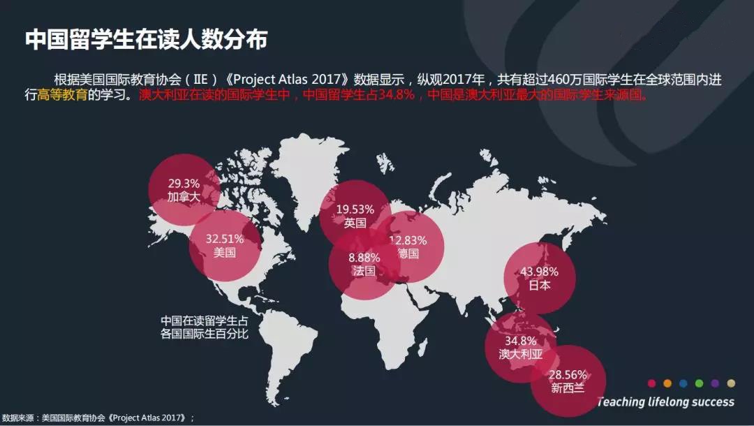 而在这众多的出国留学大军中,有非常多小伙伴都选择了去澳大利亚。根据美国国际教育协会(IEE)《Project Atlas 2017 》数据显示,纵观2017年,澳大利亚在读国际学生中,中国学生占34.8%,中国是澳大利亚最大的国际学生来源国。