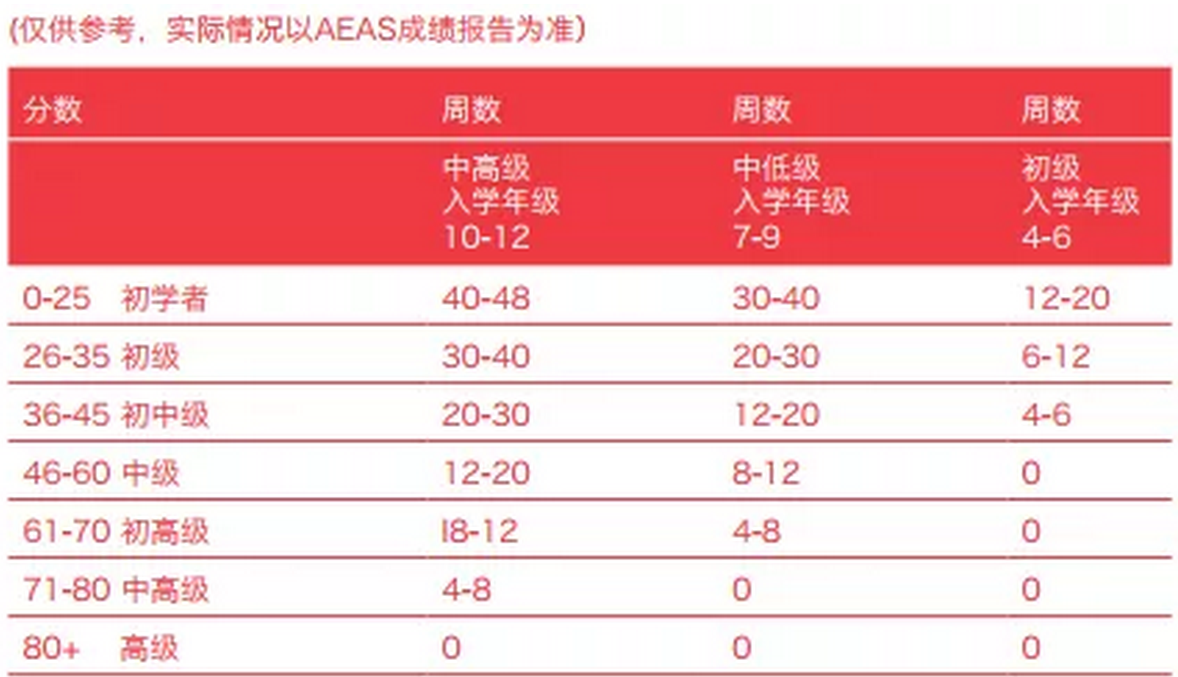 成绩报告还会建议就读的语言强化课程( ELICOS )的周数,以及建议就读的年级。