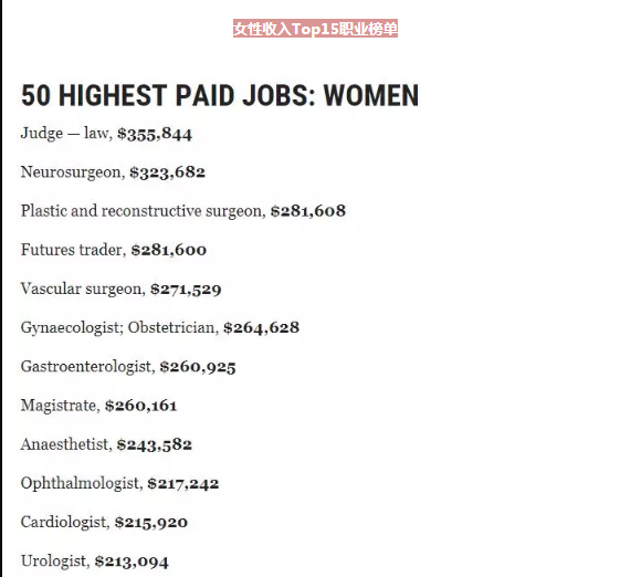 澳大利亚税务局特发表一份 澳洲男女高薪职业排行榜
