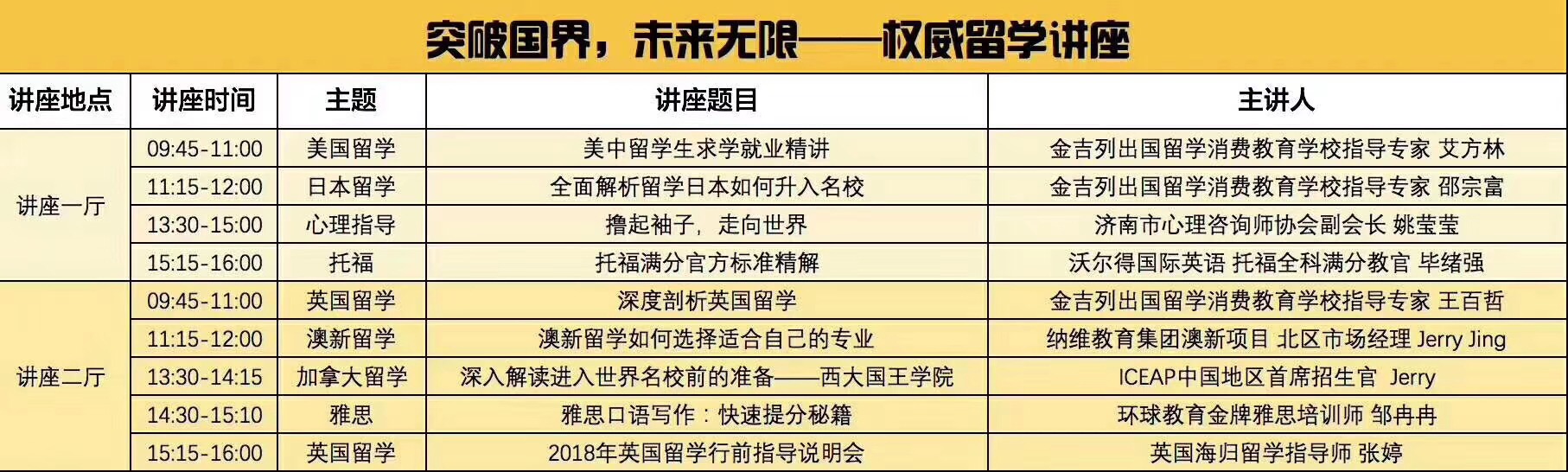 2 讲座时间:讲座时间是固定的,如果您想节省时间,可以根据讲座时间确认到访时间,在讲座开始前咨询校方,这样就会最大的节省时间了。