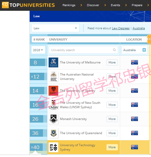 根据 QS 世界大学 2018 年最新排名显示,澳洲有 7 所大学位居世界大学的 LAW 法律专业排名前 50 位。
