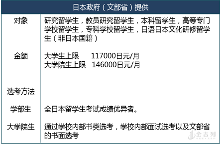②在日本的大学学习期间申请:一般在日本的大学学习的本科后期课程生及大学院修士课程生、博士课程生均可申请,经过必要的考核后,从中选拔一定数额的学业优秀者给予文部科学省奖金。关于申请的时间、提交的材料及办理手续等详细情况可向学校有关方面询问。