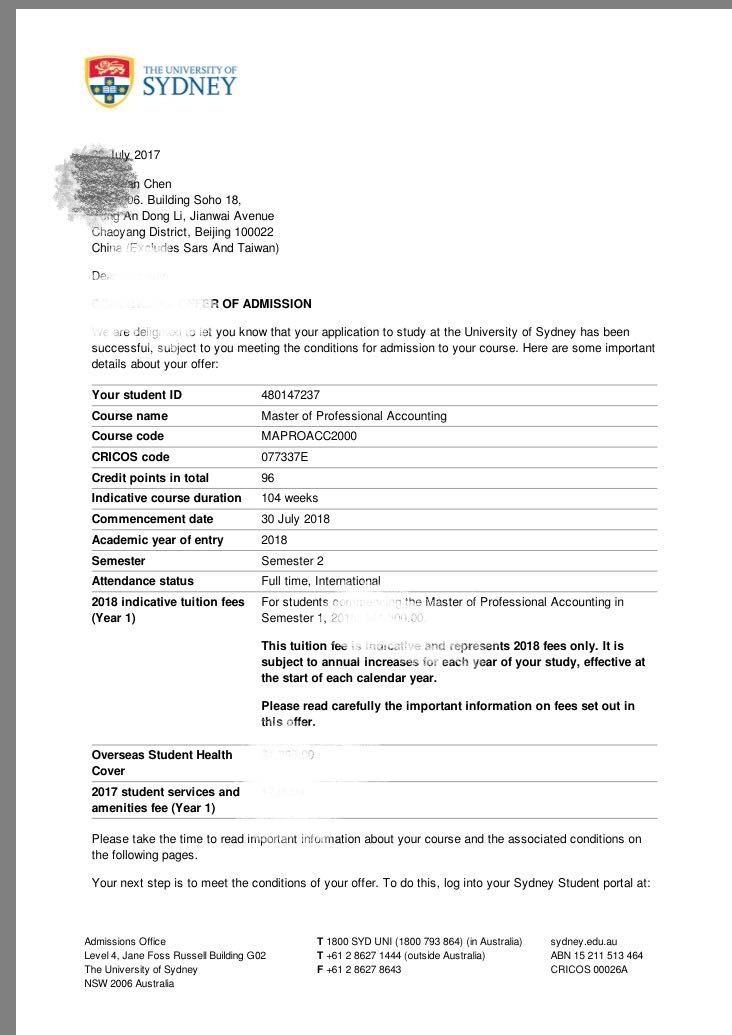 顾问感言: 大学生出国留学一定要提前做申请,因为学生来找我们时刚上大三,我们给学生量身制定了留学方案,包括提升平均分,什么时间要达到雅思成绩等,学生拿到我们的方案后,都严格按照规划来走,最终拿到了悉尼大学的Offer。所以出国留学一定要早申请早规划,这样学生就会关注自己目前的成绩,并且也会努力提升自己的成绩,为自己的 DREAM SCHOOL努力,最终申请到自己的目标院校。