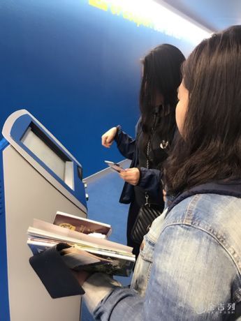 把电子护照插入自助通关机,确认接受隐私声明,使用触摸屏回答有关问题。