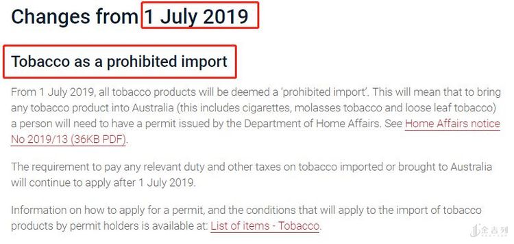 澳大利亚海关宣布:自2019年7月1日起将不能携带任何数量的烟草入境(除非拥有进口许可证)