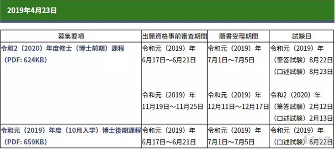 PS:正式的要项文件要等到6月更新后才可以下载。 现在不是每个学校都已经公布了新的募集要项,还没有公布的学校还是要利用 去年的募集要项 来规划 2020年的入学 。有的学校在公布 4月入学 的日程的时候也会一起公布10月入学的要求,打算 考修士/申请研究生 的同学们,务必要时刻关注学校的动向。 学部、大学院、语言学校 申请的相关最新讯息。