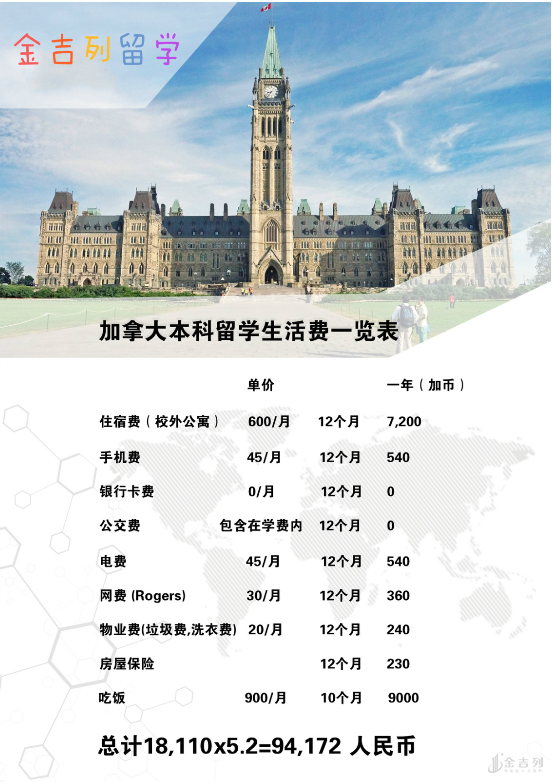 $35000-50000加币/年,包括学费,住宿,吃饭