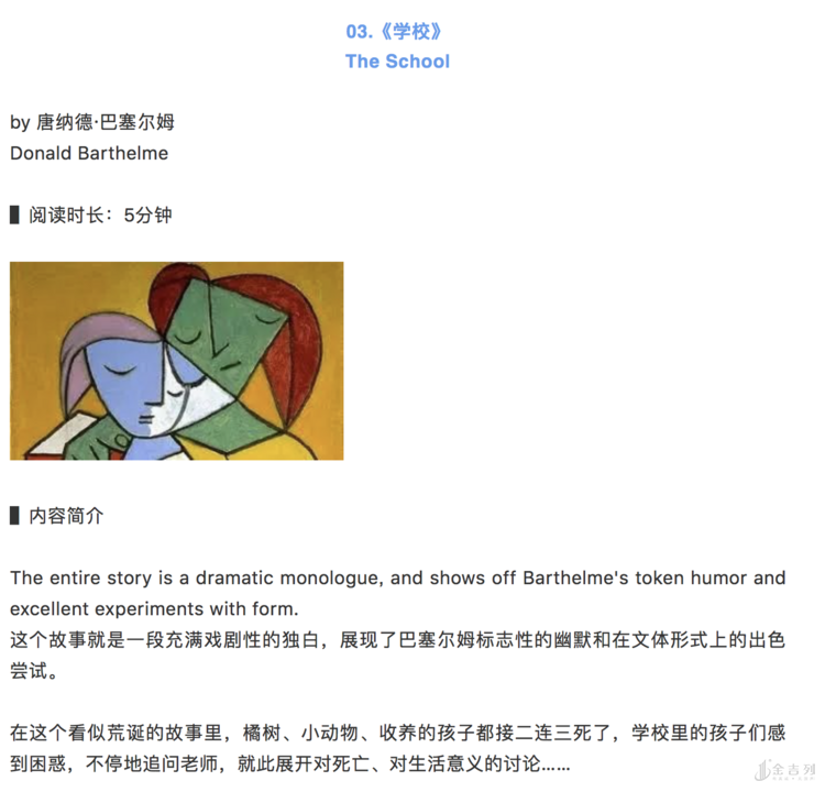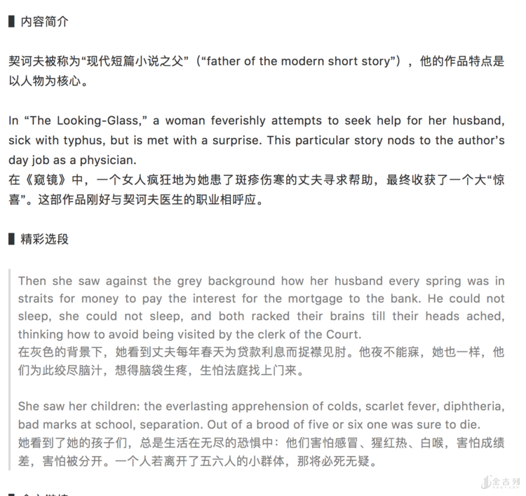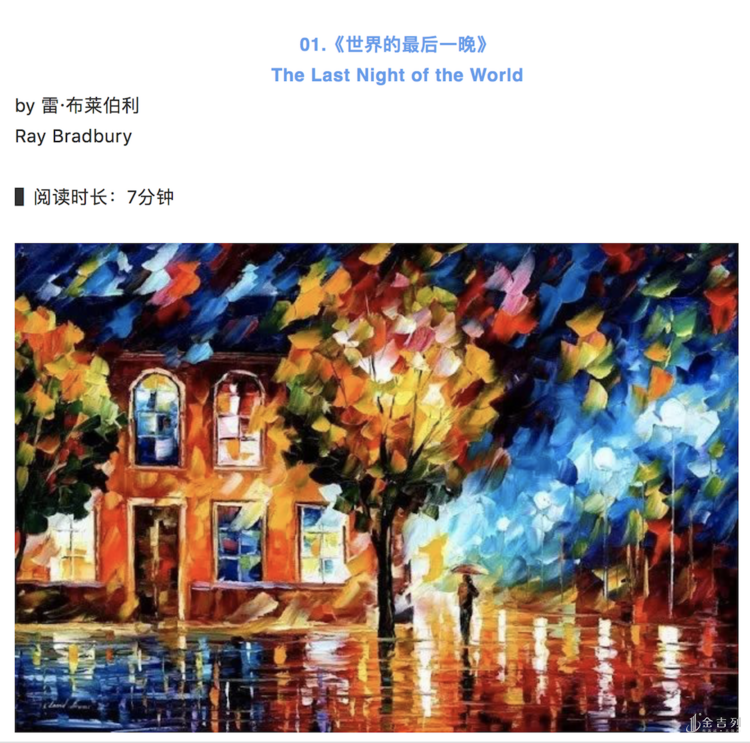 所以,老师为大家整理出了6篇英语短篇小说,篇篇经典,耐人寻味,值得细细品读。