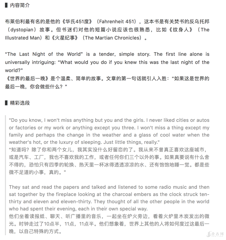 全文链接: http://www.esquire.com/entertainment/books/a14340/ray-brabury-last-night-of-the-worl-0251/