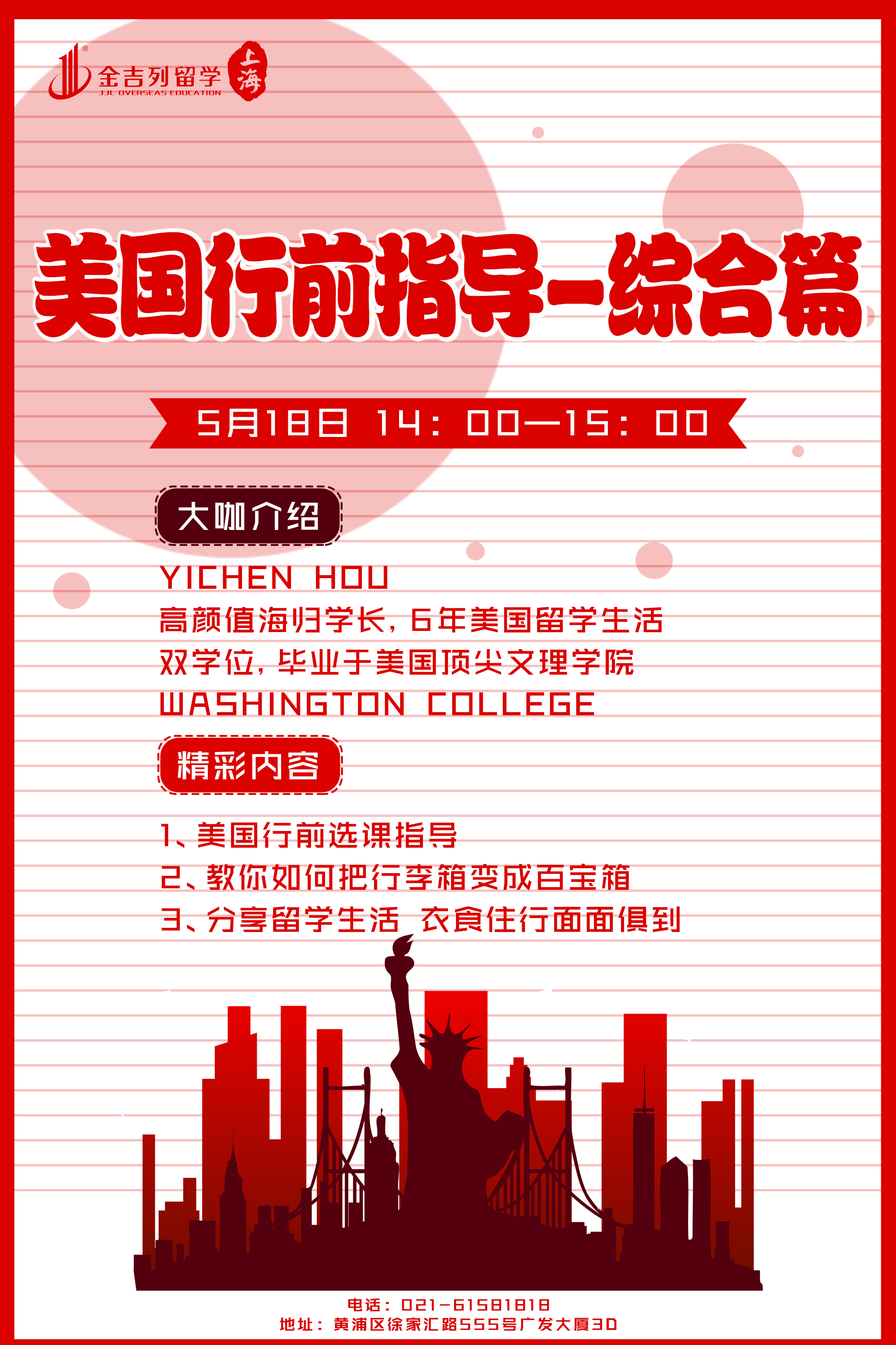 作为留学大户,金吉列留学的行前指导自然是最全面的,各位宝宝,即将赴美求学,同行小伙伴们赶紧约起来,高颜值学长,6年美国留学生活,教你们入学前如何选课,如何将行李箱变百宝箱,衣食住行面面俱到。