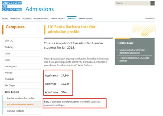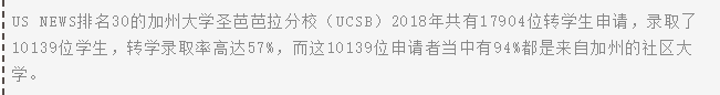 另外,加州大学今年也首次公布了加州社区学院转入加州大学的转学数据。 如下图所示: