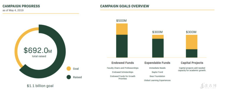 众校友纷纷慷慨解囊,比如,Sunerlan Founation基金会捐赠了1500万美元,将主要用于翻新和修复贝勒大学标志性的 Tiwell大楼;埃克森美孚基金会捐赠了483,940美元,主要用于各种学术课程,支持学生参与数学科学课程等