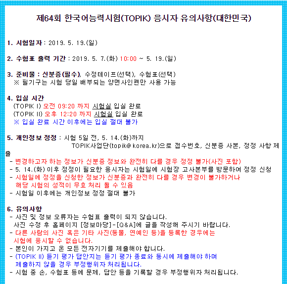 64届TOPIK考试本周日19日在香港和韩国举行,6月27日公布成绩