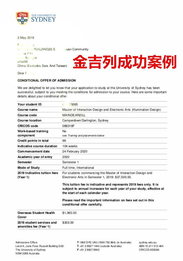 澳洲院校申请成功案例: 全球排名前50的大学 悉尼大学