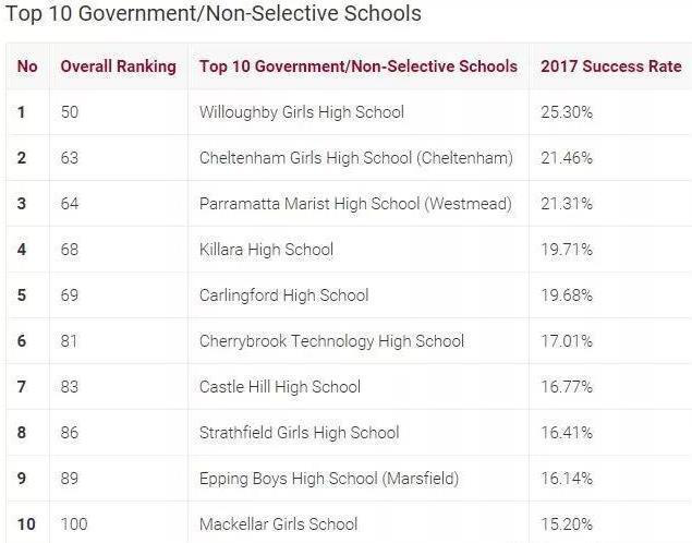 一份对今年HSC成绩分析显示,排名前49位的学校要么是公立精英中学,要么是非公立学校(独立学校+天主教会学校),但公立全制普通中学(非精英和没有入学考试)Willoughby Girls' High School排名第50。