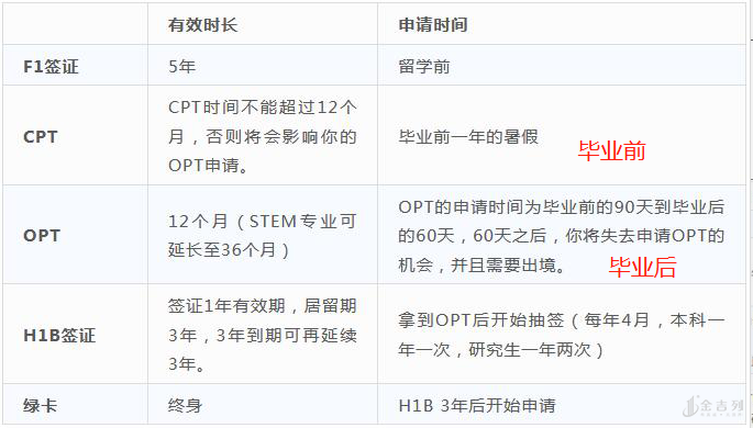 上图可以清晰的看出每个签证之间的区别和申请最佳时期~