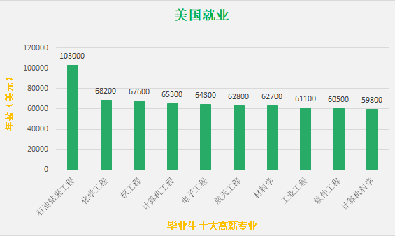 由此图看出,就业前景最好的前三位专业,均属于 STEM 专业,而在美国,十大最有价值的学位都被授予了 STEM 专业,而前五名最有价值的专业中有四名都属于工程领域。