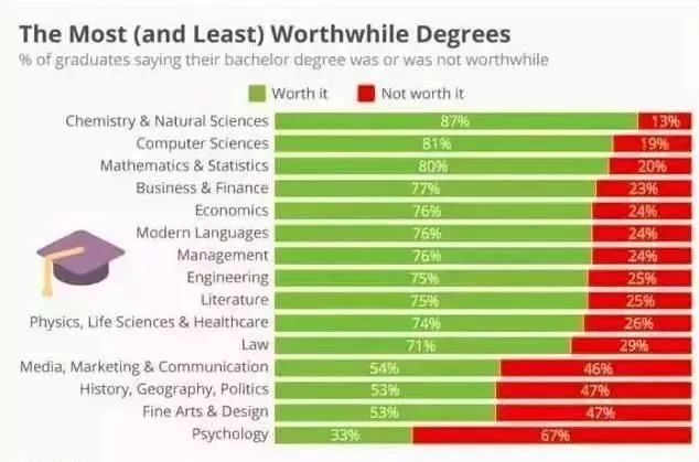 上图中,绿色部分觉得专业完全有用,红色部分表示读了绝对浪费时间。