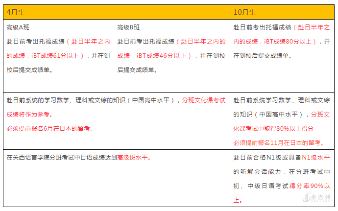 *注:对以升大学院为目标的学生只进行日语测试。