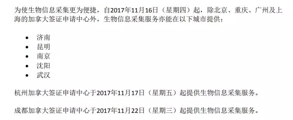 也就是说,对于身处中国国内的我们来说,今年12月31日之后(即2019年)申请加拿大签证就需要去录指纹、拍照了。年底之前仍然可以按照过去的方式办理加拿大签证。