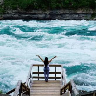 步道沿着汹涌澎湃的尼亚加拉河而建,号称“北美最壮观”的惊涛骇浪就在身边,沿途还设有几个观景台,让你可以近距离感受“雷神之水天上来”的壮烈气势。