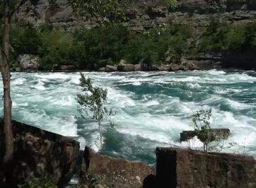这就是全球闻名的“尼亚加拉漩涡”(the Niagara Whirlpool),由尼亚加拉大瀑布激烈的水流冲刷而成。每时每刻,水流在漩涡中不断冲撞,流速可达48km/hr!
