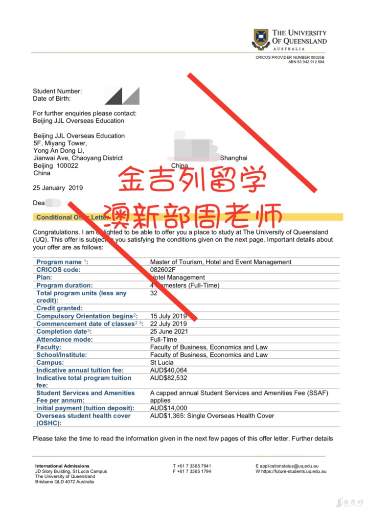 金吉列周老师向大家分享一个成功案例,短短不到一个月的时间顺利获取澳洲八大名校之一的昆士兰大学的录取通知书!