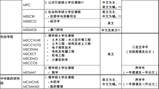 下面给大家介绍一下澳门大学研究生开设的课程: