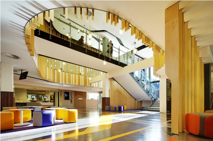 与庄重古朴的西澳大学校园不同,科廷大学的校园设计追求 现代感 与 科技感 ,高耸的一栋栋教学楼外,却又装点着充满艺术气息的涂鸦墙,以及 仿佛绒毯一般的 大片绿色草地,让整个校园都充满了无限活力。