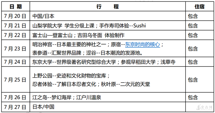 金吉列留学-山梨学院大学2019夏令营已经开启!7月20日开团8天7晚日本夏令营,带你走出世界,走入梦想!集大学课堂体验、顶尖高校参观、动漫圣地巡礼、温泉、富士山探访于一体,带你体验多面精彩的日本!5月30日报名截止,先到先得!