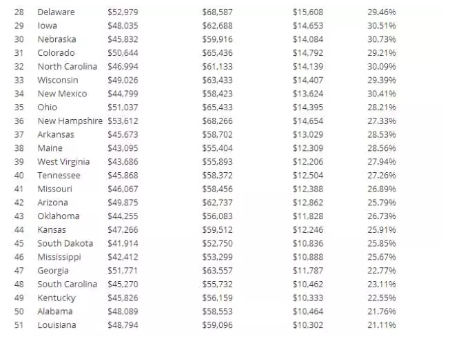 最后,附上美国其他各州的本科生和研究生平均收入数据: