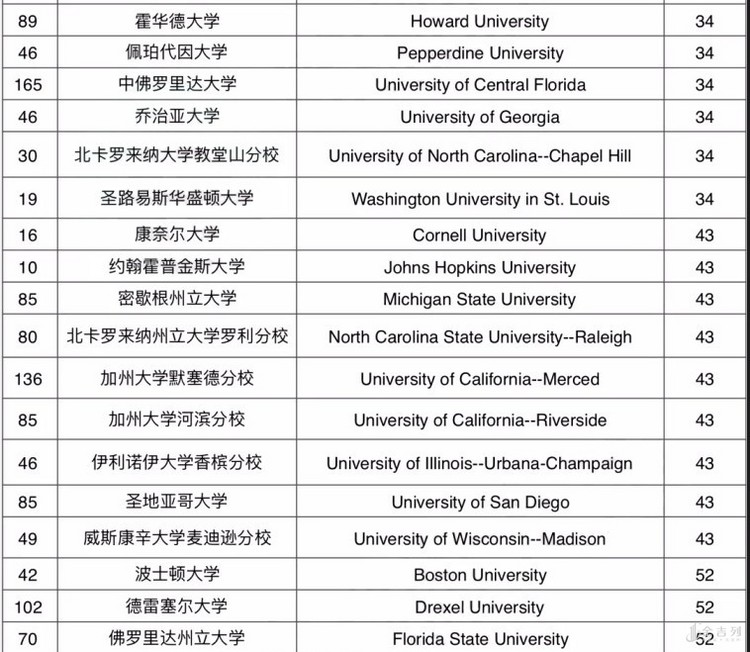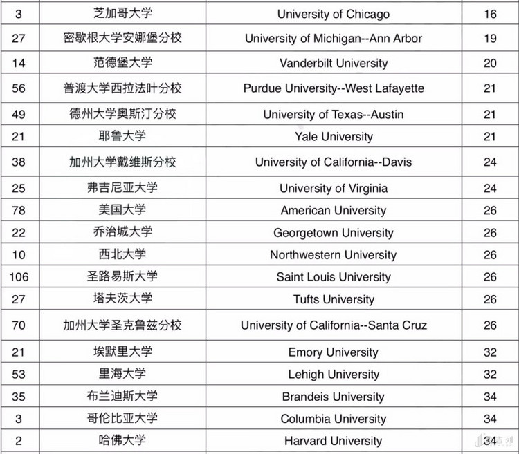 虽然绝大部分上榜学校都是全美Top 100的大学,但是,让人非常意外的是, 8所综排100名之外的大学也在本科教学质量前60的大学榜单上。