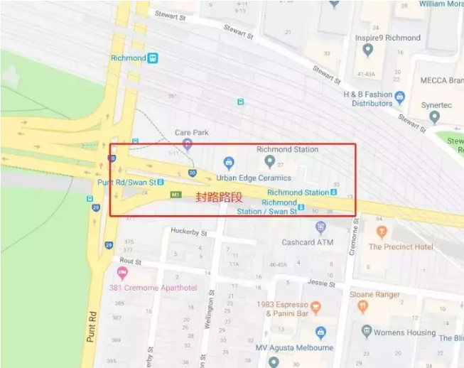 而Punt R和Cremorne St之间这段 Swan St也会在 5月19日至5月24日 之间关闭。