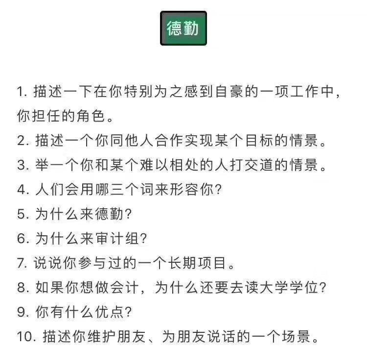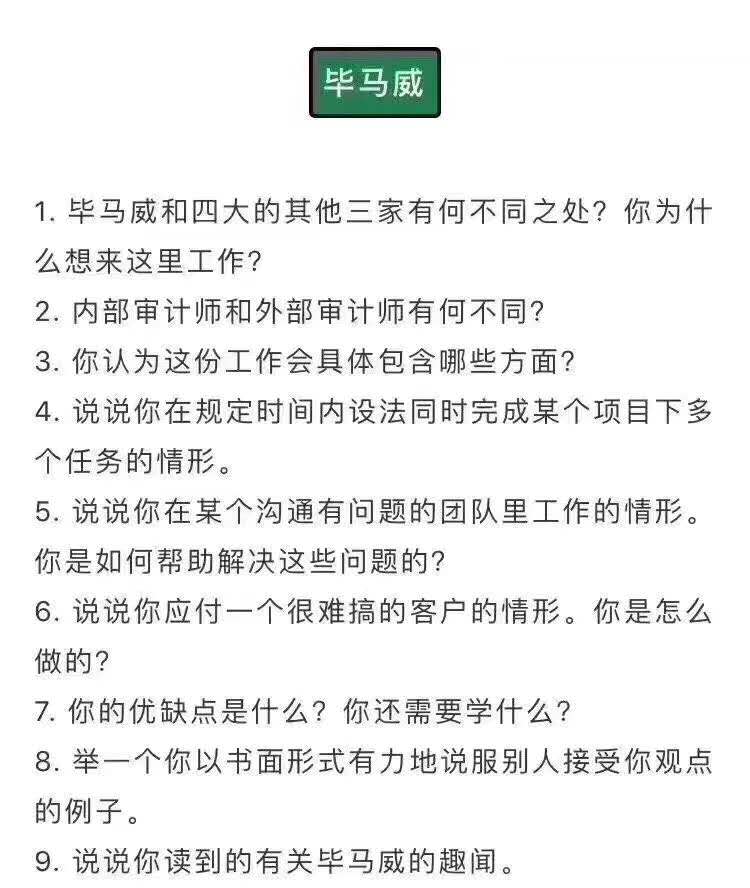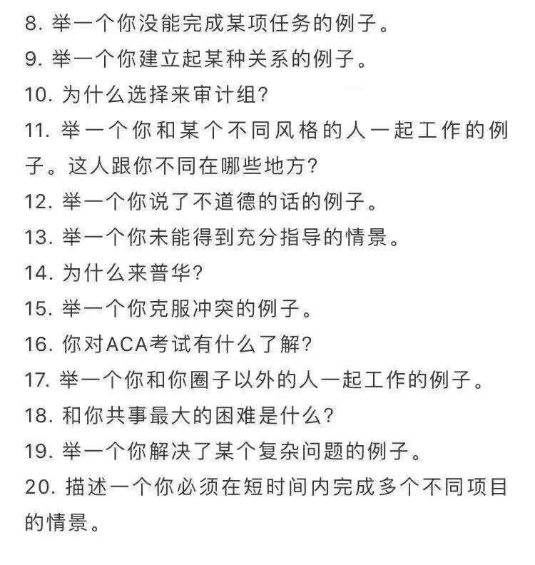 大家众所周知,如果去美国读商科,尤其是TOP30的商科,那么没有非常厉害的实习是很吃亏的~那么在国内,大家都希望进四大会计事务所去面试,四大。。当然也是非常难进的,那么常见的一些面试问题都有哪些呢?我们一起来看看吧!大家也好心理有个数儿~提前也问问自己,你是否可以答得很好?