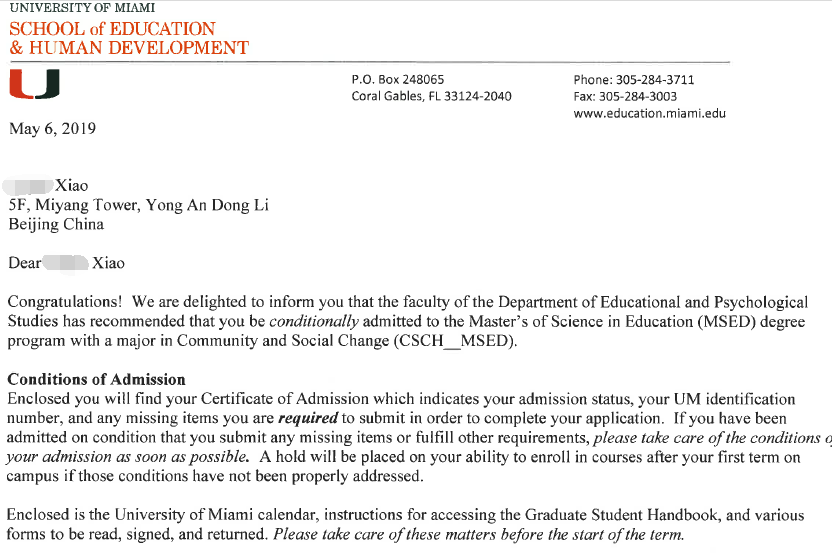 因为学生是大四来找到我们进行申请的,所以无法等到出分后在进行操作,所以孩子也有一定的破釜沉舟的决心,前期根据孩子语言测试的结果,和孩子的心里预期,我们进行了完整的定校,各个梯度的学校都有涉及,家长对于我的定校策略也是非常满意的。考试一部分,帮助孩子明确了考试的安排,同时根据孩子的朋友资源结合着我们的专业,帮助孩子包装了两端经历。同时我们的文书老师也是深入的挖掘了孩子的亮点,文书质量也是非常高。