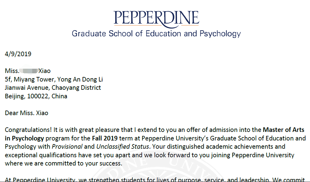 X同学的申请,是2018年申请中非常值得的案例。双非英语专业X同学,可爱苏州女孩收获美国排名前50多所学校心理学专业录取,同时收获总金额3万美金的奖学金。