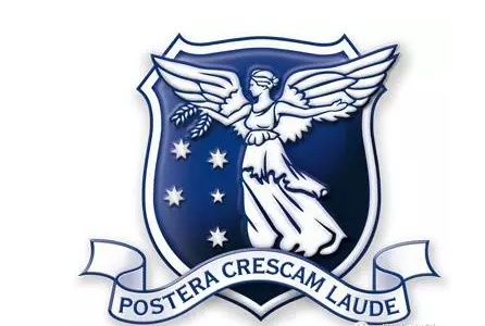 墨尔本大学的校徽以蓝色盾牌为底,洁白的胜利女神手持桂冠被四颗八角星环绕,校训出自自古罗马帝国诗人贺拉斯的诗句,英文为“We shall grow in the esteem of future generations”。