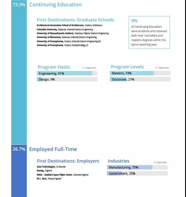 Materials Science an Engineering: 高达 73.3%的选择深造,就业的学生集中在制造行业。