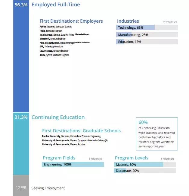 Computer Engineering:56.3%的毕业生就业, 所在行业有科技、制造业,还有教育行业。