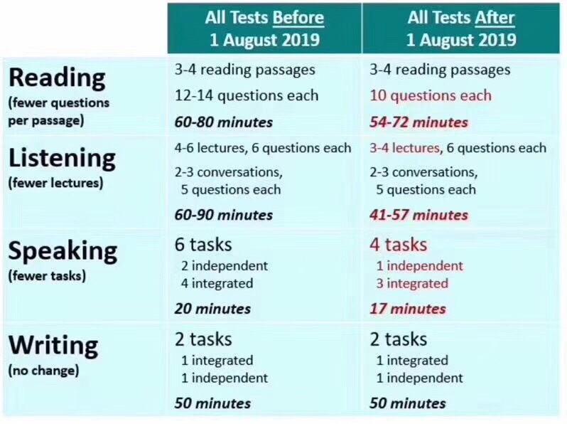 在托福阅读、听力和口语方面,ETS这次大刀阔斧砍掉了不少题量。