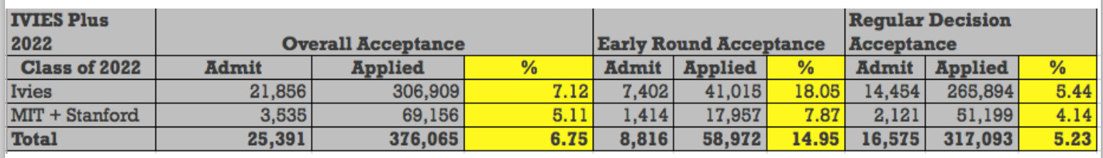 对比常规申请和早期申请的录取率,差别也非常明显: