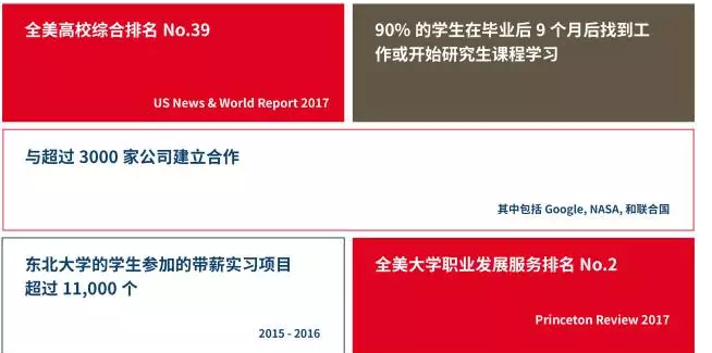 东北大学成立于1898年,大学的主校区就位于历史名城波士顿的中心,来到这里学习,你将充分融入美国式的学术氛围和充满生机的社区生活。大学连续多年排名全美前50,是全美最大的私立大学,在美国极富盛名,目前约有来自世界各地的2万名学生在东北大学学习。