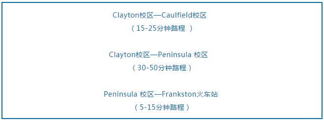 蒙纳士的校际班车 (Inter-campus bus)高频率穿梭于各大校区之间,保证了同学们的出行便捷与安全。另外,校车时间表比较固定,让同学们能很好的安排出行时间。而且校车都是完全免费的哦!