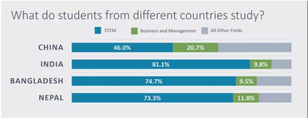 也就说,有越来越多的中国留学生更倾向于STEM专业而不是商科类专业。