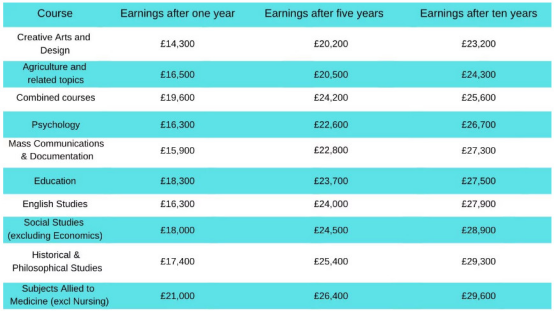 10%的学生学习的是毕业十年后收入中位数低于£25,000的专业,这也就意味着一共134,000人在离开大学10年后都不用偿还任何学生贷款。